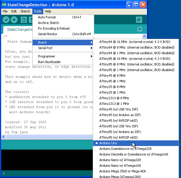 Or you can use another Uno loaded with the "board detector" sketch I wrote, and described here: