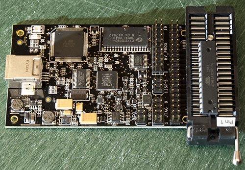 It's a bit fiddly to use because you have to "jumper" together lots of pins depending on the device you want to program: