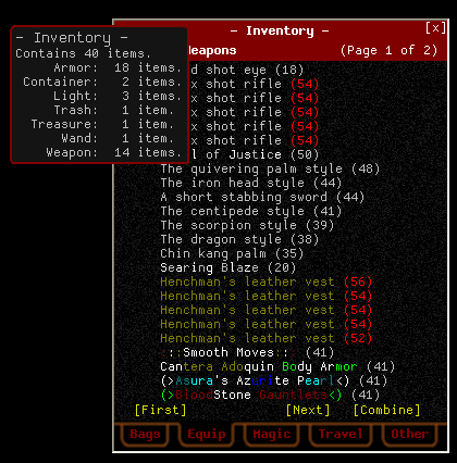 | If you hit the "combine" link, then multiple items of the same type are combined, to save space and where you don't care for the mouse-over detail about each one: