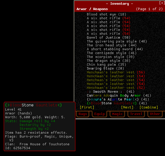 | I'm not sure that Aardwolf sends out the codes I used when I wrote this. Make sure that the inventory tags are turned on (they may have only been on the test server).